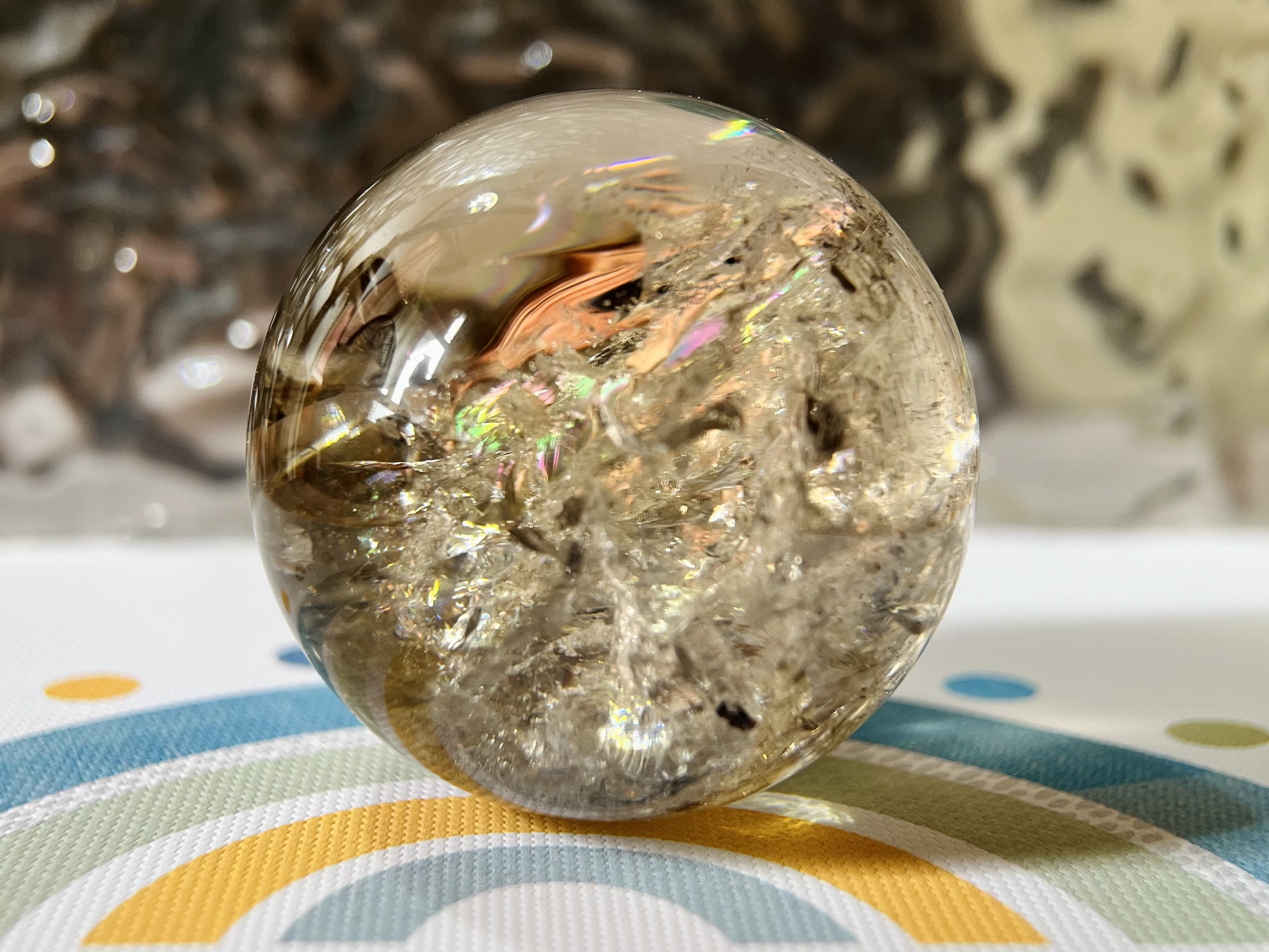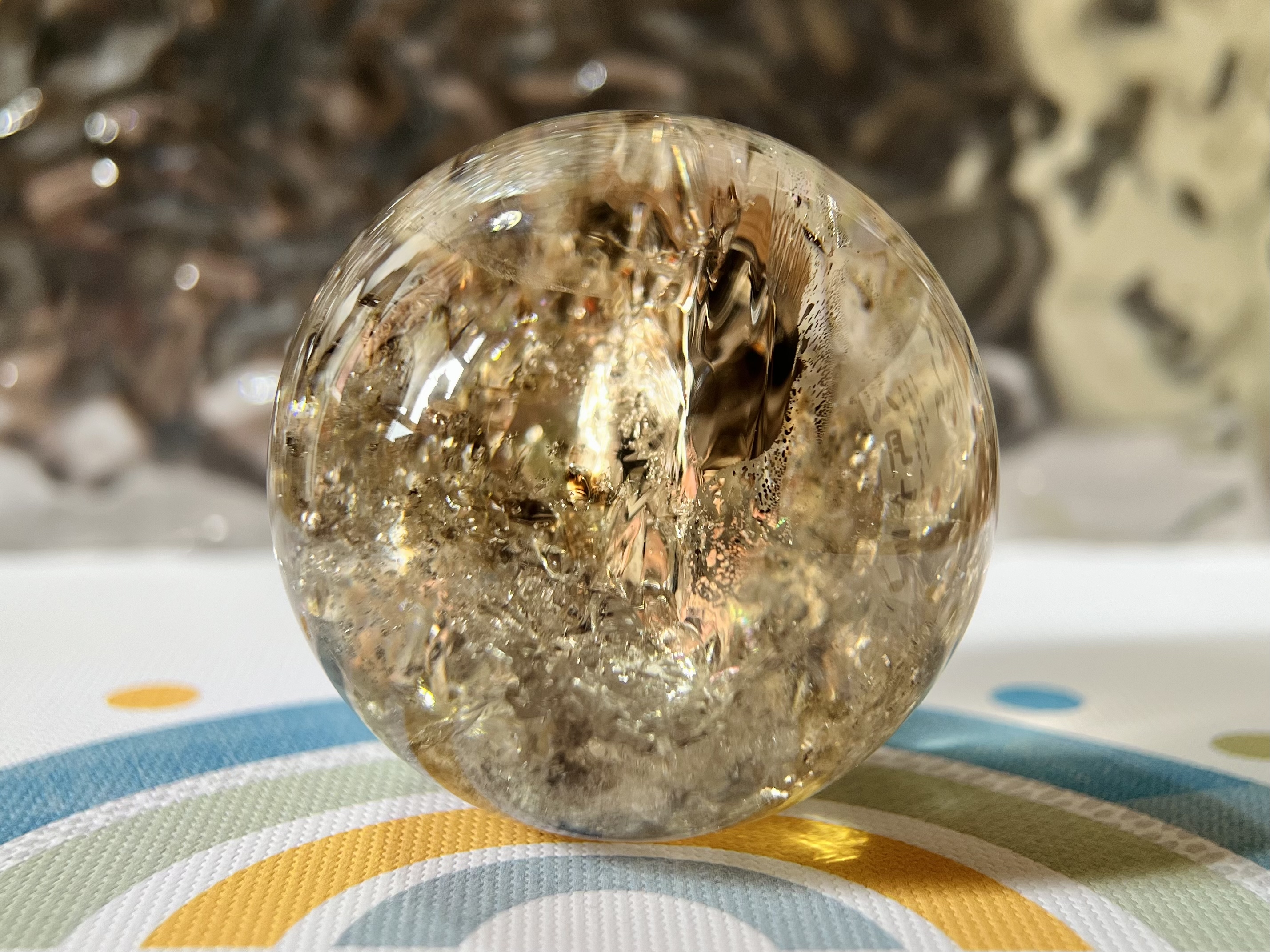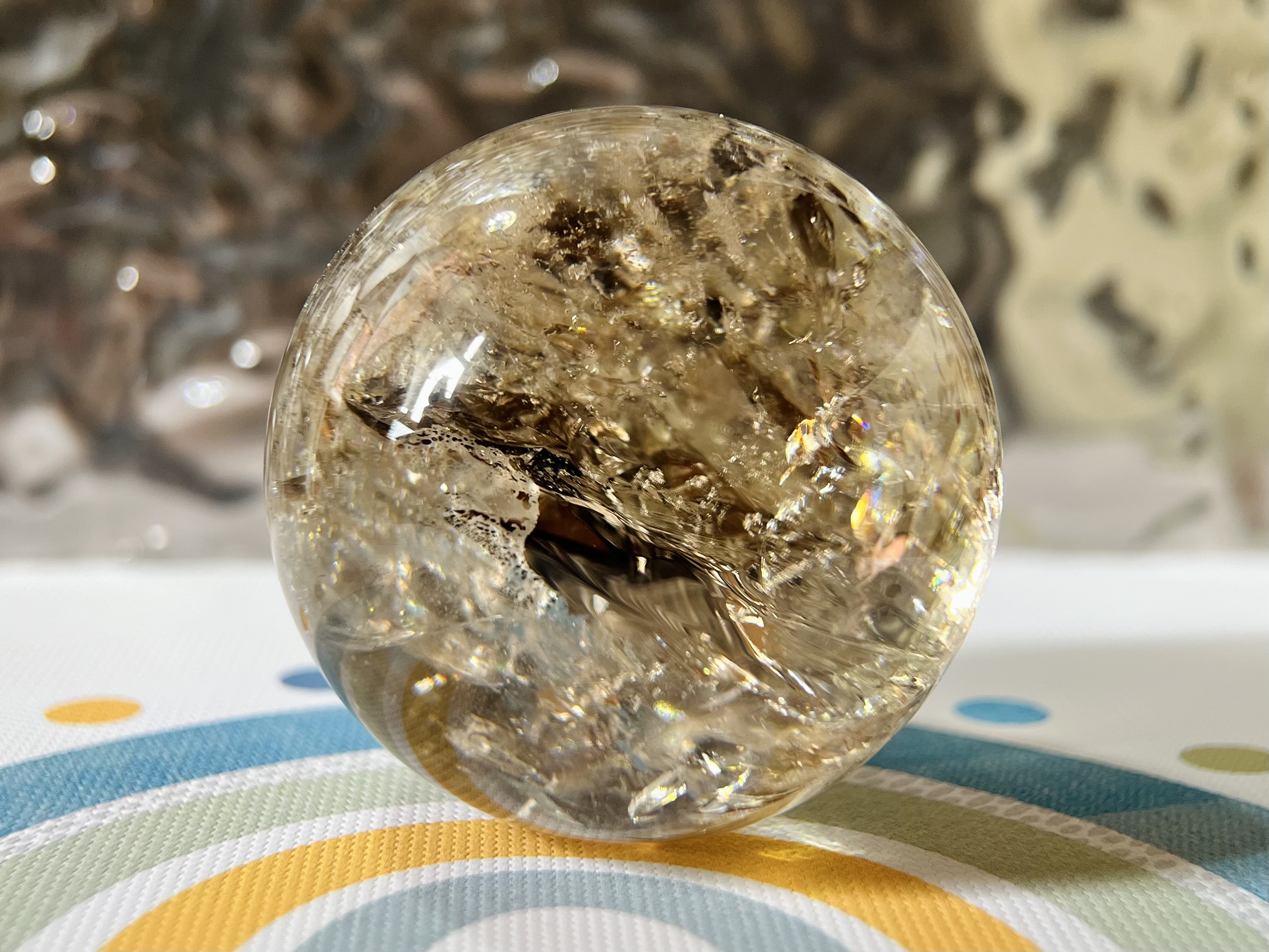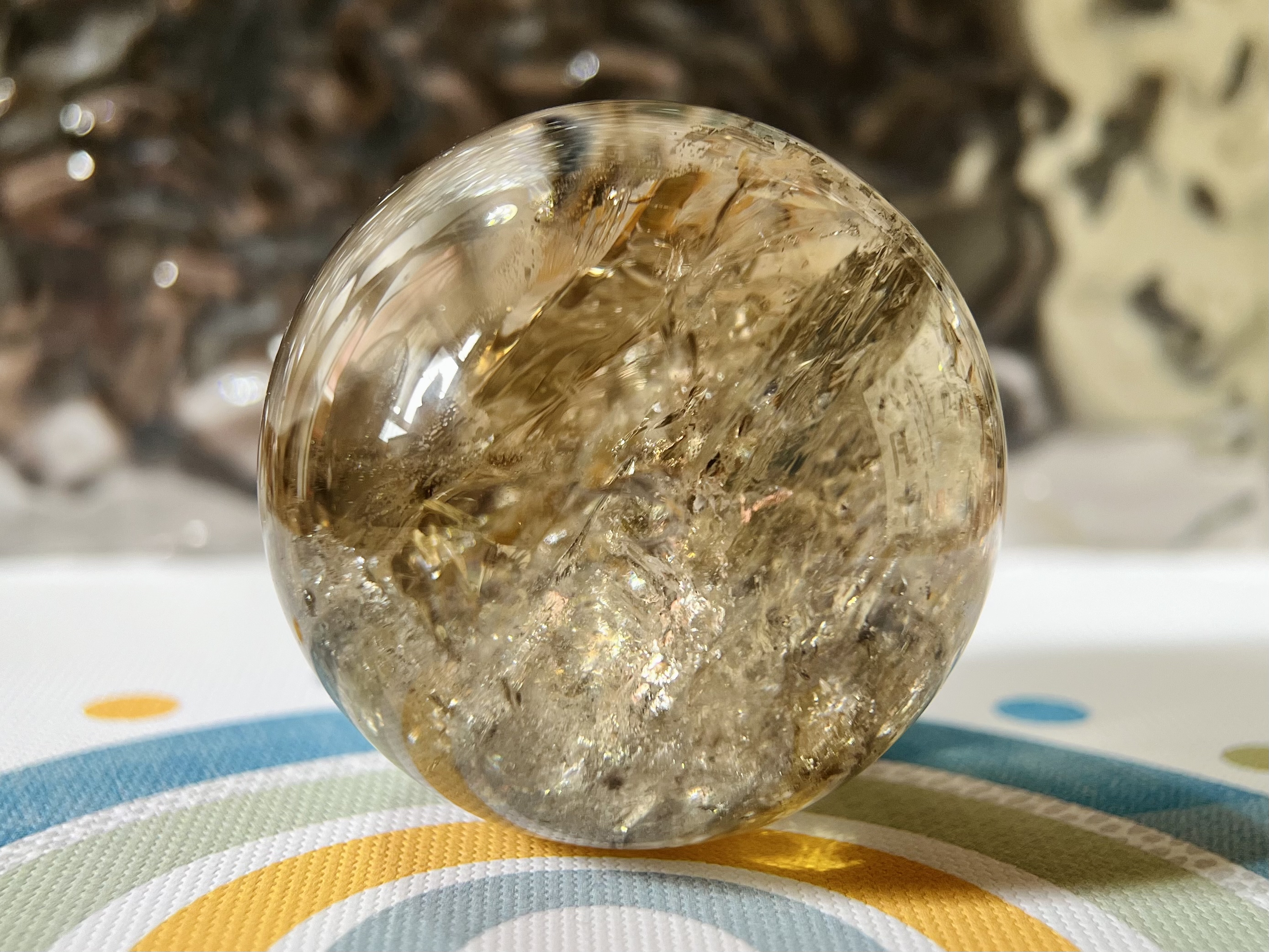 茶晶球(Smoky Quartz)是一種深沉的茶色水晶,色澤由淺棕到深黑,有「煙水晶」之稱;其功效主要在於穩定心神、吸收負能量、舒緩壓力、提升接地感,幫助改善睡眠,並被視為「情緒排毒師」,適合需要安定、排解負面情緒及增強耐力的人,對應海底輪,有助於身心健康與穩財。