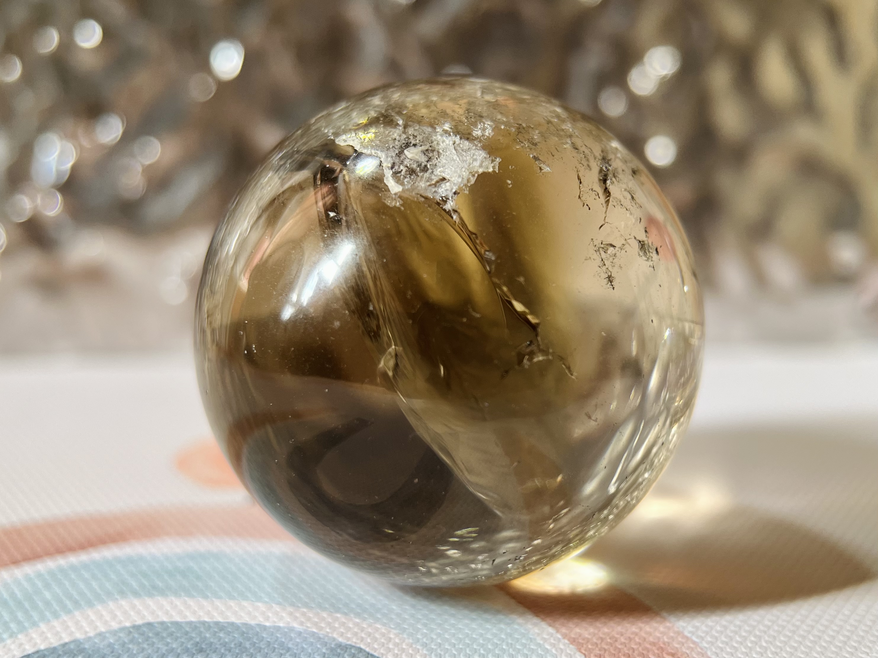 茶晶球(Smoky Quartz)是一種深沉的茶色水晶,色澤由淺棕到深黑,有「煙水晶」之稱;其功效主要在於穩定心神、吸收負能量、舒緩壓力、提升接地感,幫助改善睡眠,並被視為「情緒排毒師」,適合需要安定、排解負面情緒及增強耐力的人,對應海底輪,有助於身心健康與穩財。
