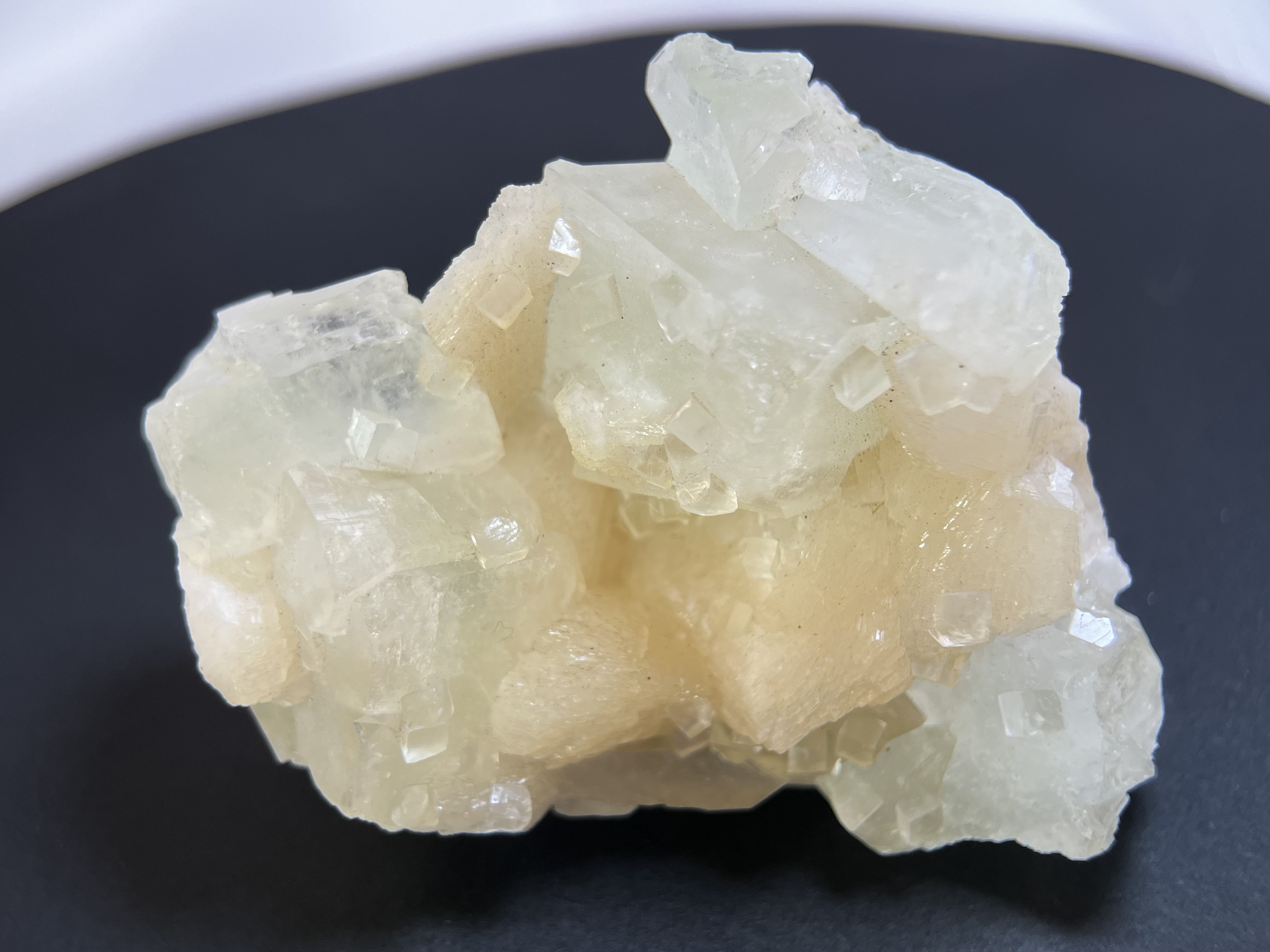 魚眼石(Apophyllite)原石外形晶瑩剔透,常呈立方體、柱狀或片狀,有玻璃光澤,像魚眼般清澈反光,多與沸石等共生,顏色有白、綠、藍等,功效主在提升靈性、誠實面對自我、淨化空間與水晶,擺放建議適合書桌、冥想區,用於消磁淨化其他水晶(尤對月光石、拉長石有效)。